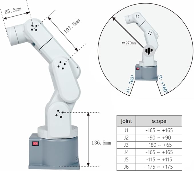 Radio de Acción: Tiene un alcance máximo de 270 mm.