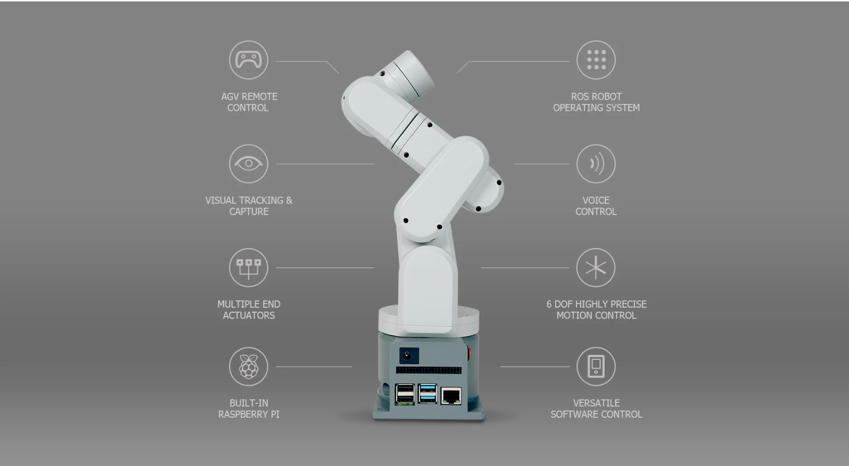 Cerebro Integrado: Utiliza una Raspberry Pi 4B (microprocesador quad-core de 1.5GHz), lo que le permite funcionar de manera autónoma sin necesidad de una computadora externa constante.